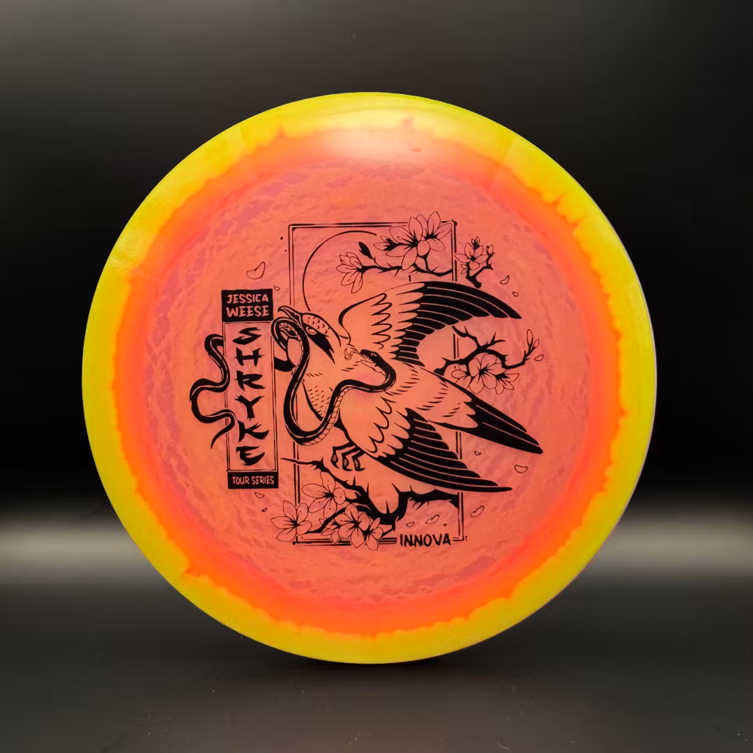 Innova Halo Champion Shryke har vært signaturdisken til Jessica Weese i mange år, og i denne utgaven har Innova virkelig tatt Shryke-konseptet til et nytt nivå. Halo Champion-plasten gir disken et eksklusivt utseende i lufta – enten den bombes nedover åpne fairways eller snevres gjennom trange gaps i skogen.